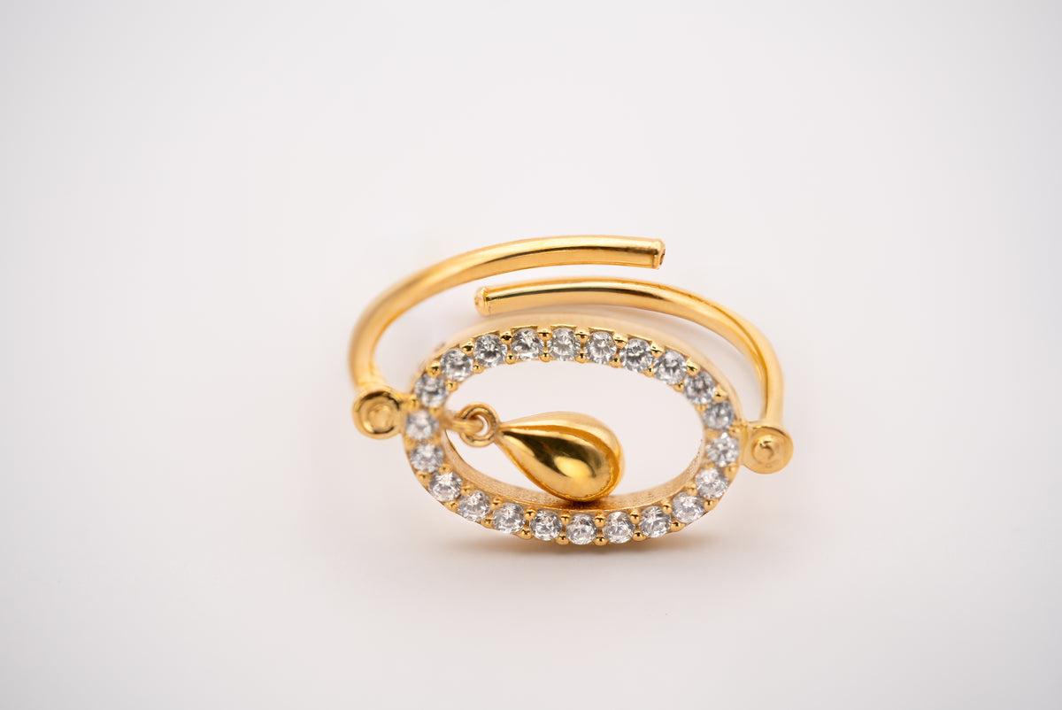 Crafted with a radiant gold-tone finish, this ring offers an eye-catching yet refined look, perfect for special occasions or everyday elegance. Its open-ended design ensures a comfortable and adjustable fit, making it a must-have statement piece for your jewelry collection.