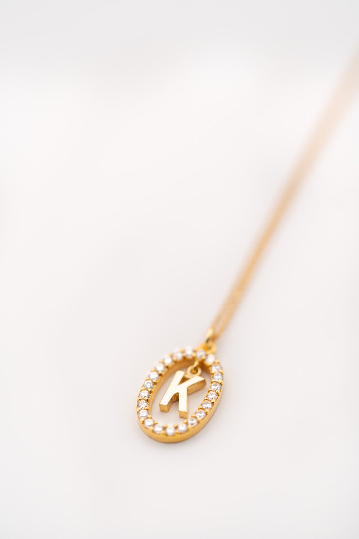 • Delicate Oval Frame with Initial "K" Charm – a unique, personal touch