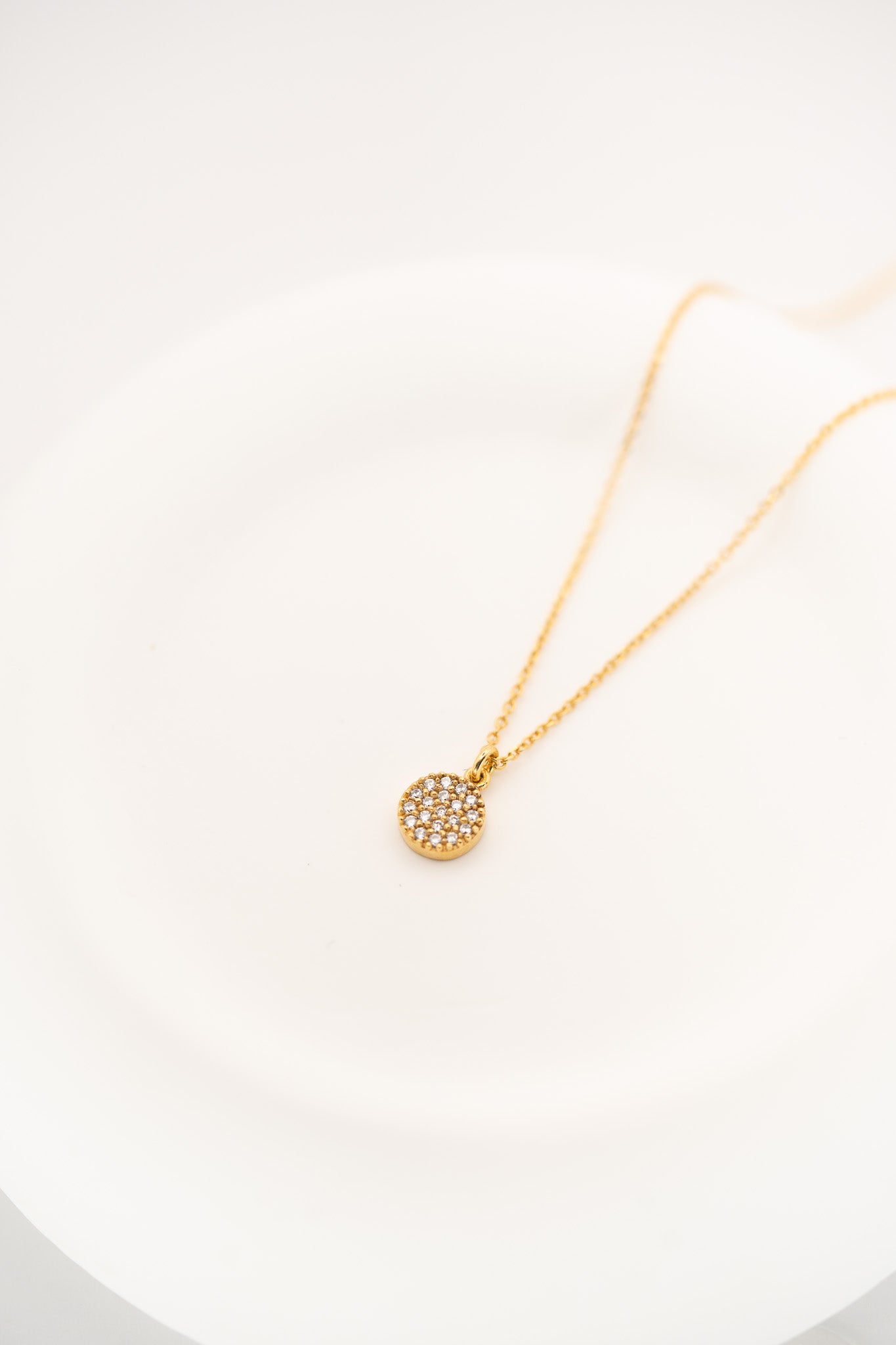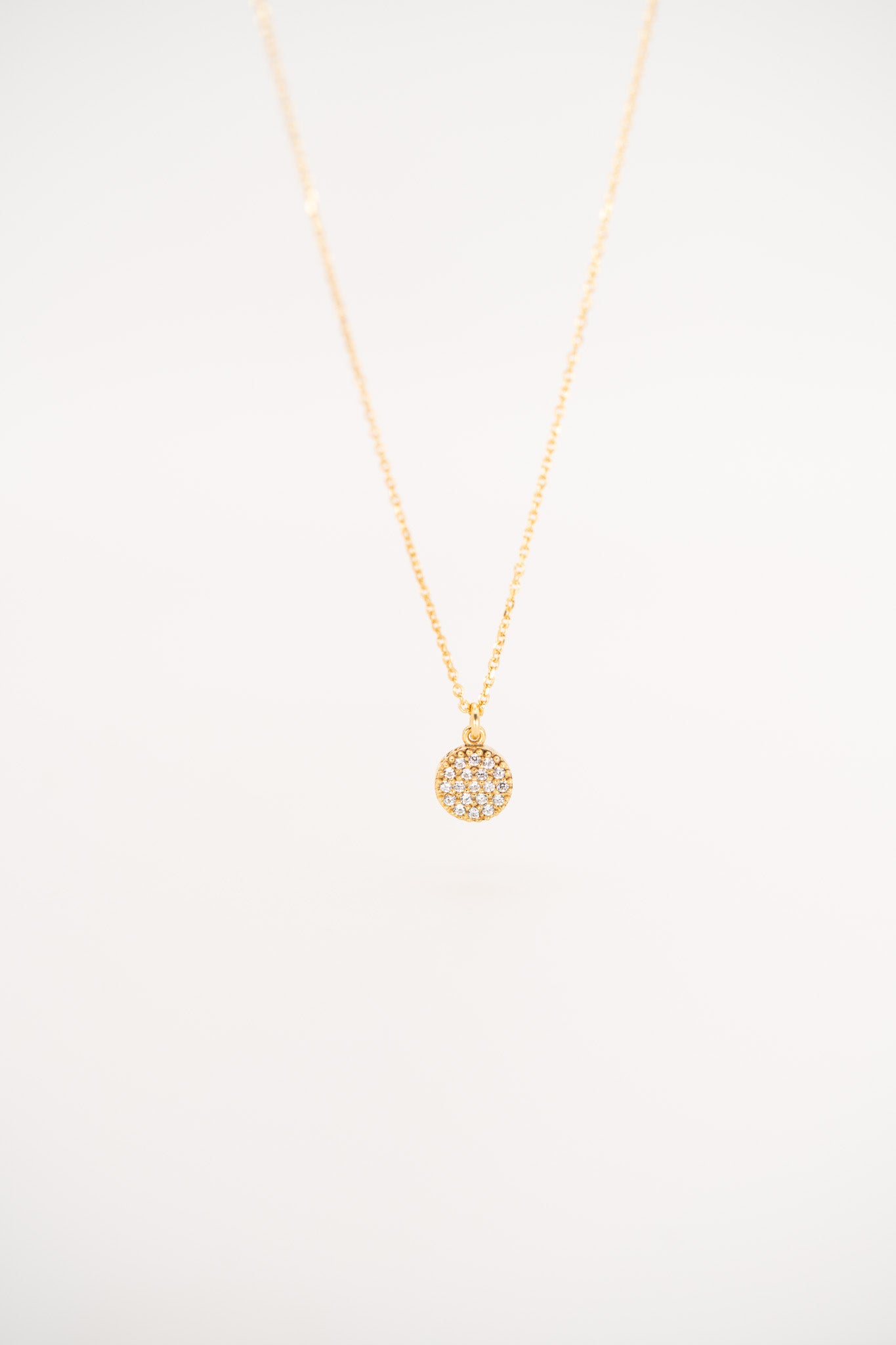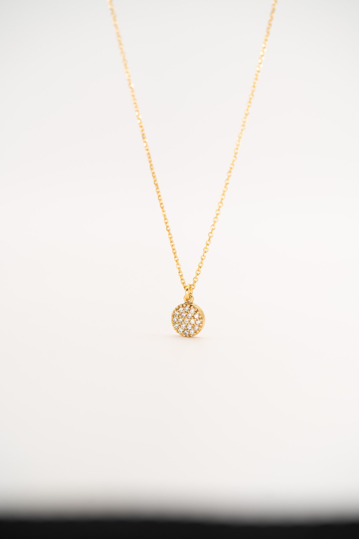 Let the Radiance Pave Disc Necklace add a subtle sparkle to your look, effortlessly elevating your style with its luminous charm. 💛💎