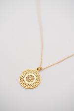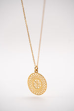The Radiant Sunburst Pendant is a symbol of light, warmth, and endless energy. Its mesmerizing gold-plated filigree design reflects the brilliance of the sun, making it a perfect statement piece for those who radiate confidence and positivity. The delicate cut-out pattern adds an airy elegance, making this pendant both lightweight and captivating.