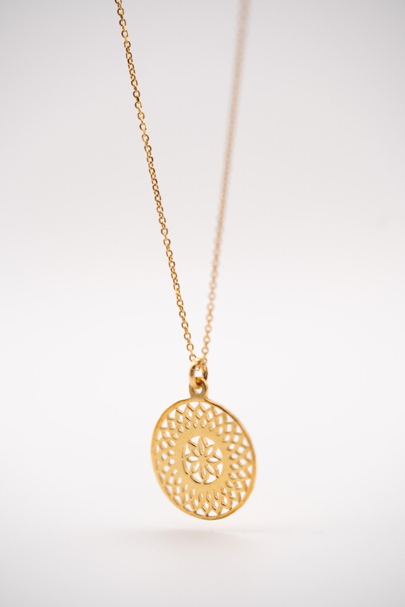 Intricate filigree sunburst design – Evokes light, warmth, and positive energy.