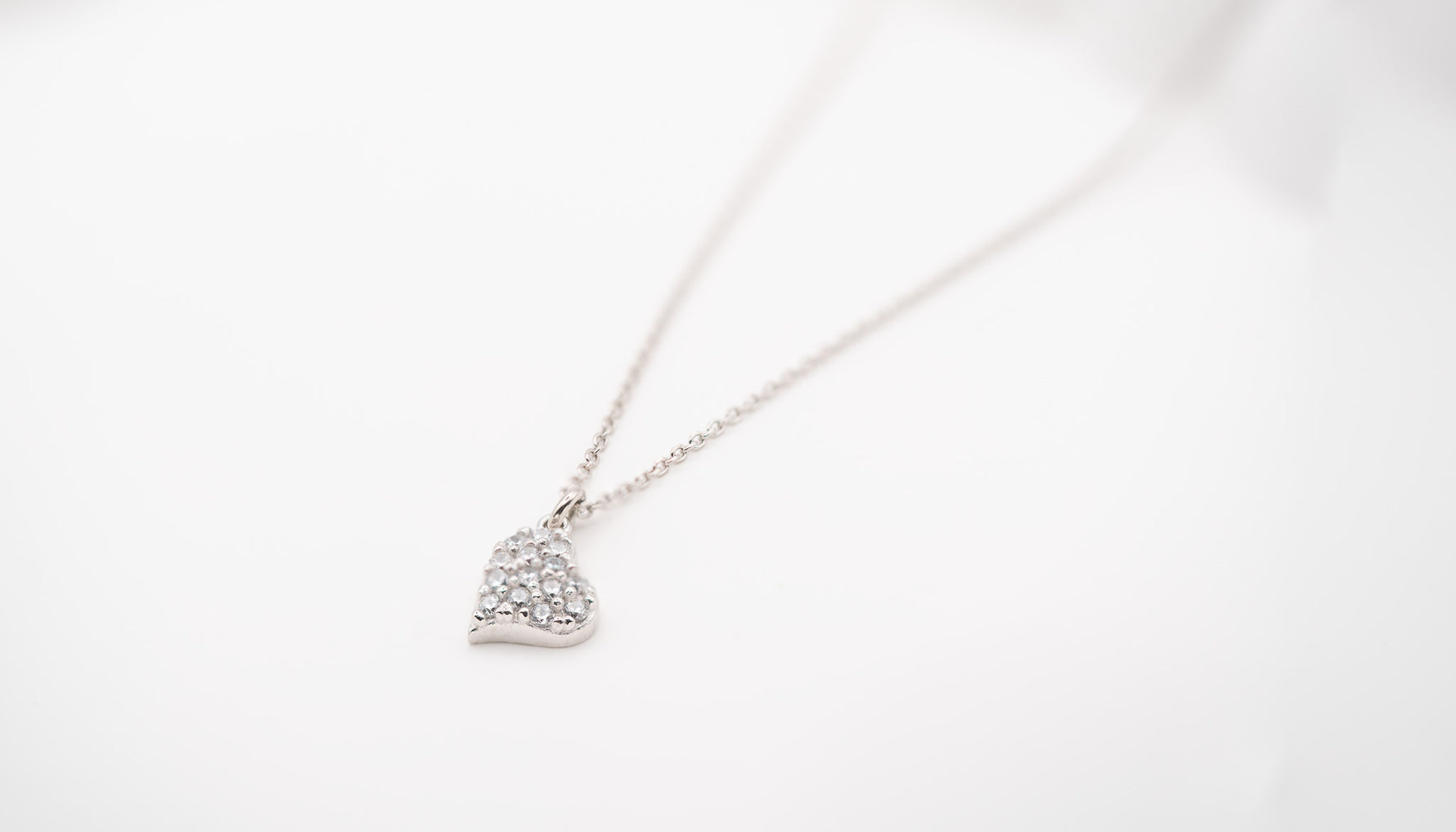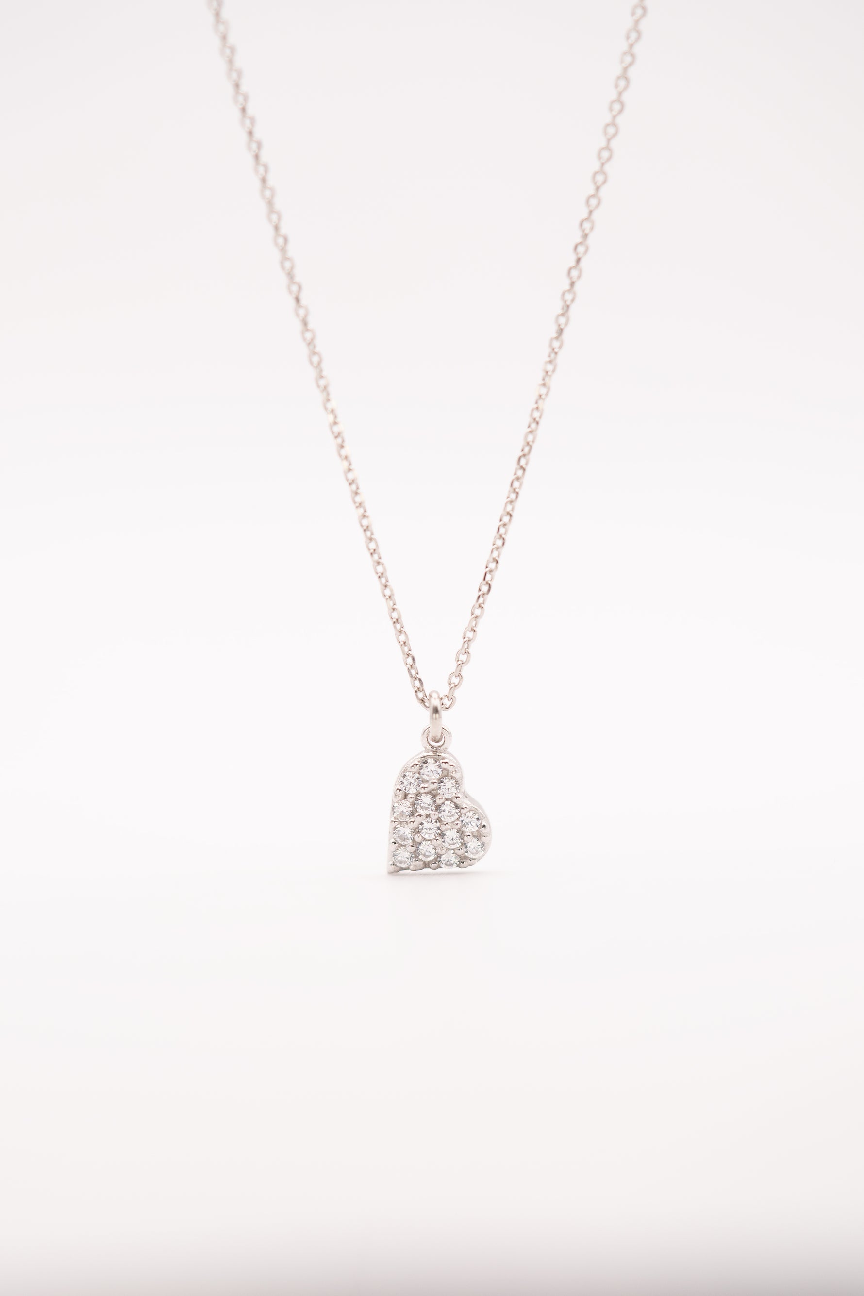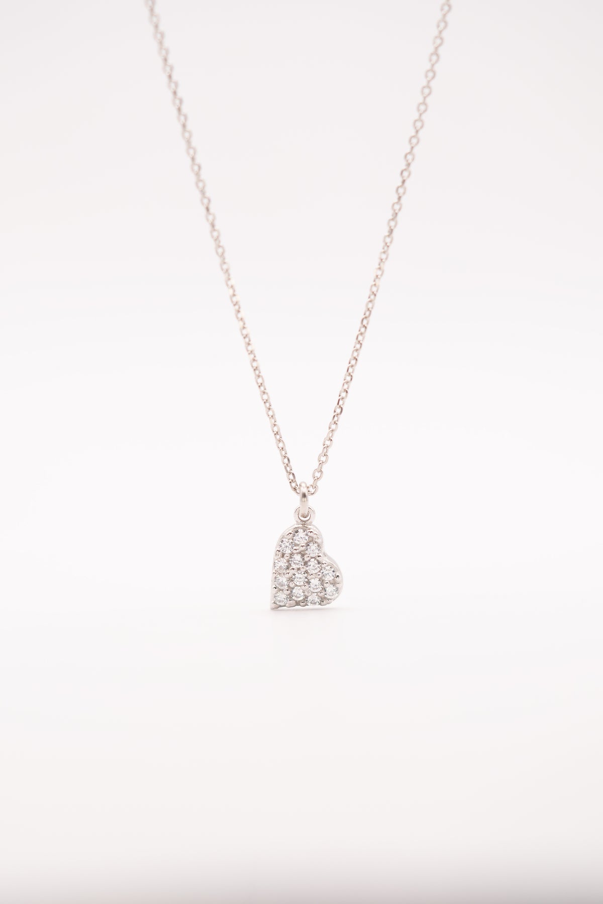 ✔ Unique tilted heart design with brilliant white stones